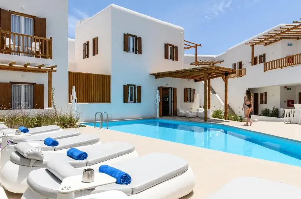 Mykonaki Hotel położony jest w Ano Mera na wyspie Mykonos. Oferta obejmuje pokoje rodzinne oraz dostęp do basenu na świeżym powietrzu. Goście mogą korzystać z darmowego Wi-Fi, herbaty i kawy dostarczonej bezpośrednio do pokoi, doskonałego śniadania, parkingu bezpłatnego, pomieszczeń niepalących oraz centrum fitness. W pobliskim otoczeniu znajduje się wiele atrakcji, takich jak Ftelia Beach w odległości 1,9 km, Neolityczny mieszkaniec Mykonos w 2 km oraz Muzeum Archeologiczne Mykonos w 5 km. Przy hotelu znajdują się przystanki komunikacji miejskiej, a bilet kosztuje 2 euro. W pobliżu są także popularne restauracje i klubы, np. Fisherman - Giorgos & Marina Taverna w odległości 20 metrów oraz Paradiso Club Cable w 5 km.